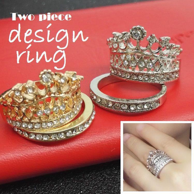 指輪 王冠モチーフ デザインリング ツーピース リング レディース アクセサリー ジュエリー シルバーカラー ゴールドカラー 王冠 クラウン ラインス プラスナオ Paypayモール店 通販 Paypayモール